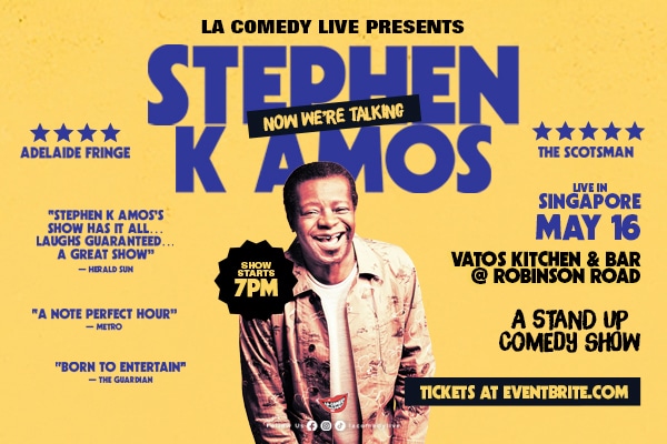 Catch renowned comedian, Stephen K. Amos, live on stage in Singapore with his hit showย Now We’re Talkingย on May 16, 2026 at Vatos Kitchen & Bar!