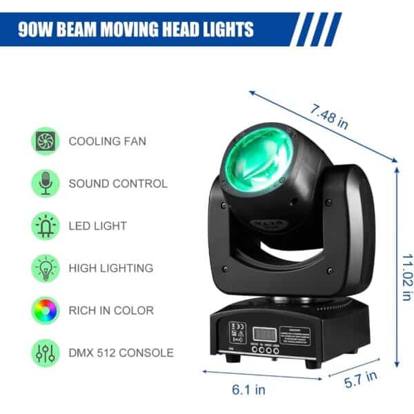 The DJXFLI 90W Moving Head Light is designed to deliver bright and colorful lighting effects for DJs, weddings, parties, clubs, concerts, and other events. Featuring a 90W RGBW LED source with a sharp 2ยฐ beam angle, it produces vivid light with smooth dimming and high-speed strobe effects up to 10 times per second. With wide rotation capability and multiple control modes, this compact and durable light is suitable for both professionals and beginners. Its built-in cooling system prevents overheating, ensuring stable performance and long service life.