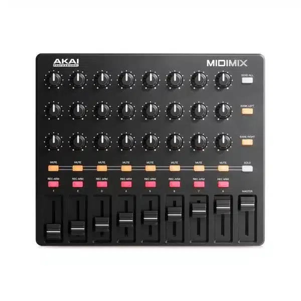 Akai Professionalโs portable MIDImix solves this problem completely. With Akai Professionalโs famous build quality and cutting-edge engineering, it combines a high-performance mixer with 8 individual line faders and a master fader, 24 control knobs arranged 3 per channel and 1 to 1 mapping with Ableton Live (Ableton Live Lite is included). You can send all the mixerโs settings to their DAW with a single press of a button, for unprecedented management and precise control over your DAWโs functionality. This is greatโit means that you can mix and modify/manipulate your projects concurrently in real time, giving you a much wider array of creative options as a result of the far greater creative flexibility afforded by MIDImix.