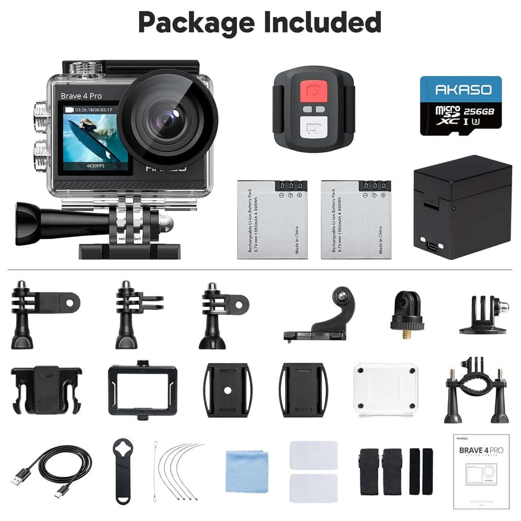 The AKASO Brave 4 Pro Action Camera is built for adventure, delivering sharp 4K Ultra HD video and 20MP photos. With its dual screens, electronic image stabilization, waterproof housing, and wide 170ยฐ field of view, itโs designed to capture every detail of your journey. Whether underwater, on the slopes, or in the air, the Brave 4 Pro combines advanced features with a compact, durable design.