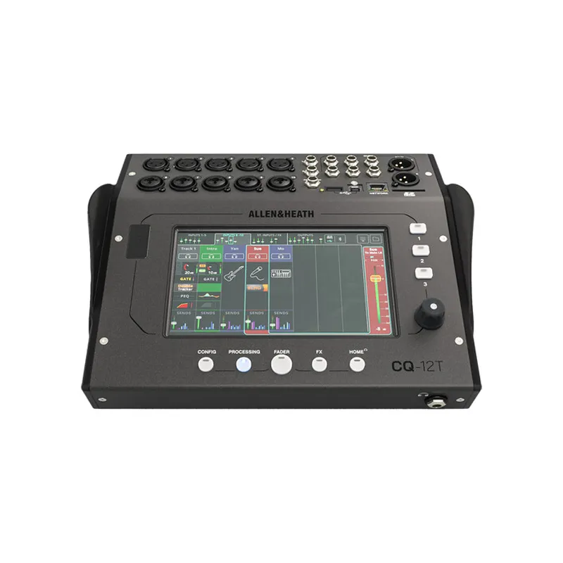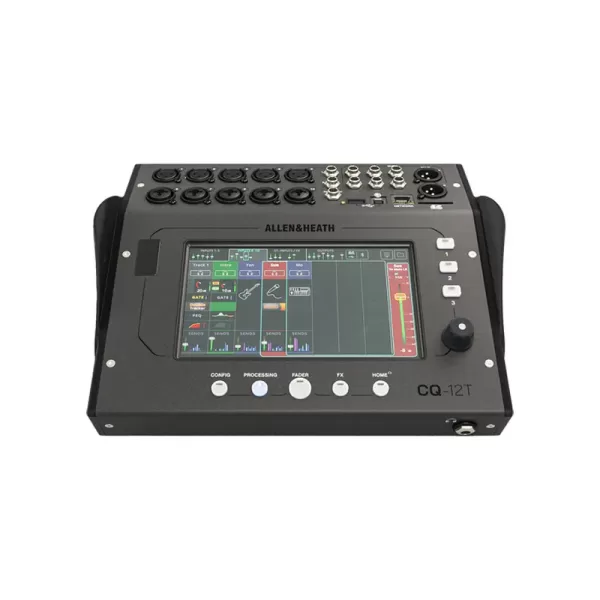 The CQ-12T mixer utilizes a 7โณ capacitive touchscreen interface to easily navigate and control the robust mix engine that comes complete with several assistants to help your mixes sound their best including a gain assistant, feedback assistant, FX assist engine, and Automatic Mic Mixer (AMM). Take control of the full complement of channel strip effects like EQ, compression, and gating thatโs available on every channel and set up several sub mixes for monitoring and effects. The CQ-12T features 10 mic/line XLR/combo XLR-1/4โณ inputs, a pair (for stereo) of 1/4โณ balanced inputs, two balanced XLR main outputs, and six 1/4โณ mix outputs. There is an assignable headphone output. The mixer ships with a 12 VDC power supply.