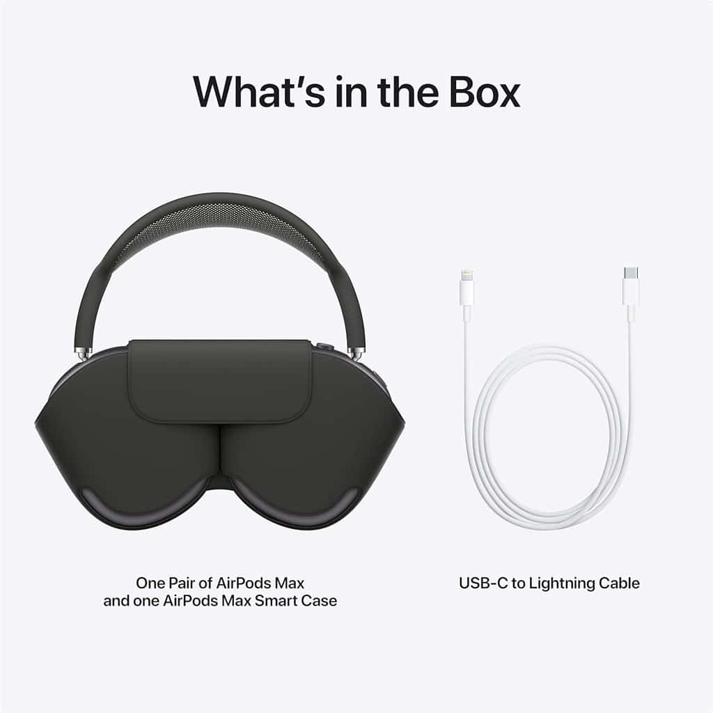 - Included in Box: AirPods Max, Smart Case, USB-C to Lightning Cable, Documentation