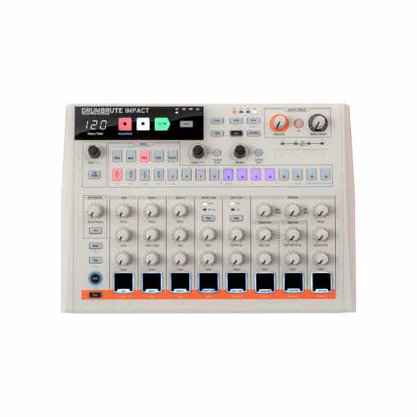- DrumBrute Impactโs pads also light up when their sound is triggered by the sequence, giving you instant visual feedback on what sounds are playing and when. Yet another way this small but mighty drum machine draws you in and helps you become a better, more confident musician.