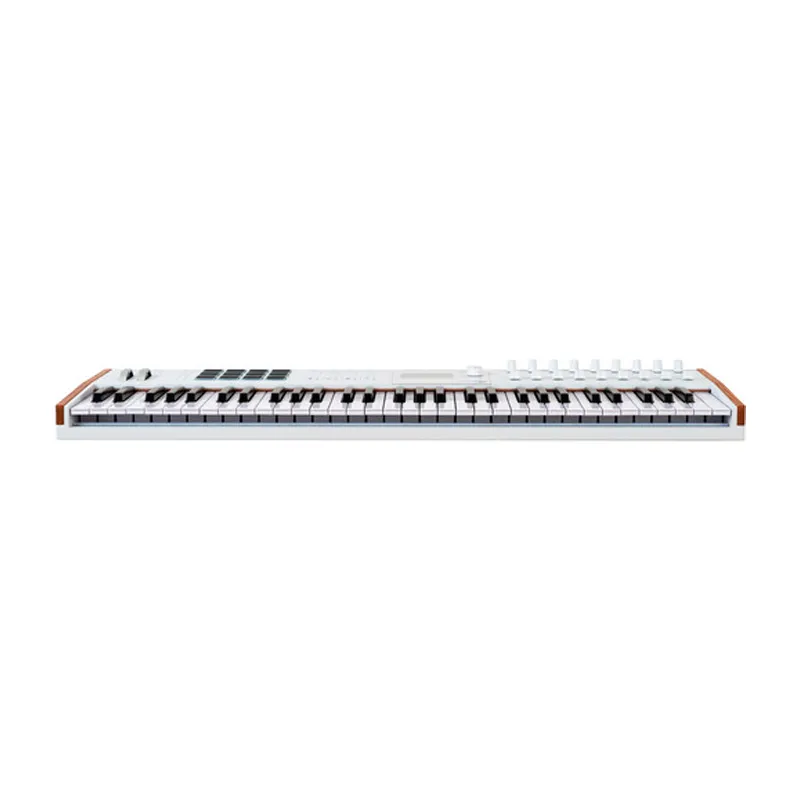 Several creative enhancements have been added including an arpeggiator, scale mode, and chord play. The system is designed to provide 1:1 control of the included Analog Lab software, Ableton Live Lite, and Native Instruments The Gentleman virtual-instrument software, as well as any MIDI-controllable plug-in or DAW, including Ableton Live, FL Studio, Logic Pro, Cubase, and Bitwig Studio. The controller is USB powered and includes a USB-C cable.