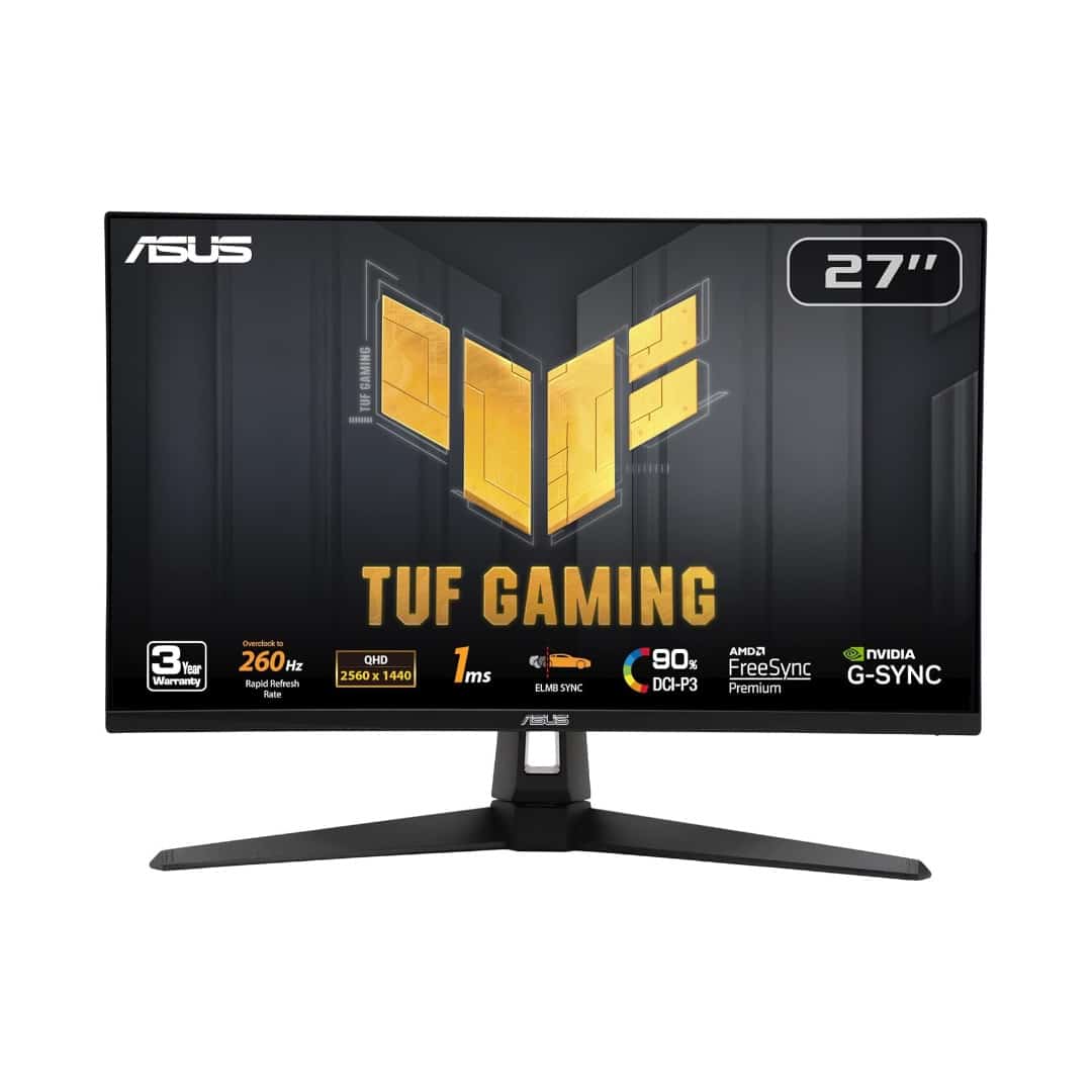 The ASUS TUF Gaming VG27AQM1A is a 27-inch QHD (2560 x 1440) gaming monitor designed for competitive players and immersive gameplay. With an overclocked 260Hz refresh rate, 1ms GTG response time, and Fast IPS panel technology, it delivers ultra-smooth visuals with exceptional clarity and color accuracy. Featuring ASUS Extreme Low Motion Blur Sync (ELMB Sync), FreeSync Premium, and G-SYNC compatibility, the monitor eliminates ghosting and screen tearing for seamless, responsive performance. HDR10 support with DisplayHDR 400 certification enhances contrast and brightness, while 90% DCI-P3 color space coverage ensures vivid, true-to-life colors. Built with durability and versatility in mind, this monitor includes multiple connectivity options and ASUS-exclusive GamePlus features to give gamers every competitive edge.
