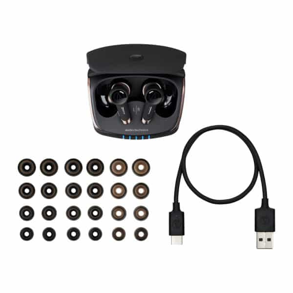 Experience the next level of wireless audio with the Audio-Technica ATH-TWX9, a pair of premium in-ear headphones that combine cutting-edge technology, exceptional comfort, and customizable control. Designed for audiophiles and everyday listeners alike, the ATH-TWX9 delivers stunning clarity and immersive sound powered by 5.8 mm high-resolution drivers.Featuring digital hybrid active noise-cancellation, these earbuds let you focus on your music or calls without distraction โ or switch to hear-through mode when you want to stay aware of your surroundings. With Bluetooth 5.2 connectivity, Qualcomm Snapdragon Sound, aptX Adaptive, and Sony 360 Reality Audio support, the ATH-TWX9 ensures a truly dynamic and detailed sound experience.Its compact design, responsive touch controls, and integration with the Audio-Technica CONNECT app give you full control of your listening environment. Enjoy up to 6 hours of continuous playback (plus an additional 12.5 hours via the charging case) for all-day performance.Key FeaturesTruly Wireless Design: Enjoy complete freedom of movement with secure, in-ear fit.Digital Hybrid Active Noise Cancellation: Choose from five preset modes or let the earbuds automatically adjust to your environment.Hear-Through Function: Allows ambient sounds and your own voice for natural communication.High-Resolution 5.8 mm Drivers: Extended frequency range and rich detail for premium sound quality.Bluetooth 5.2 Connectivity: Stable, low-latency wireless connection for streaming, gaming, and calls.Audio-Technica CONNECT App: Customize noise-cancelling levels, EQ, touch controls, and access low-latency mode.Extended Battery Life: Up to 6 hours per charge, plus 12.5 hours from the charging case (total 18.5 hours).Voice Assistant Support: Compatible with major smart assistants for hands-free control.Comfort-Focused Fit: Lightweight and ergonomic design for long listening sessions.Premium Build Quality: Sleek, durable black finish with intuitive touch sensors.