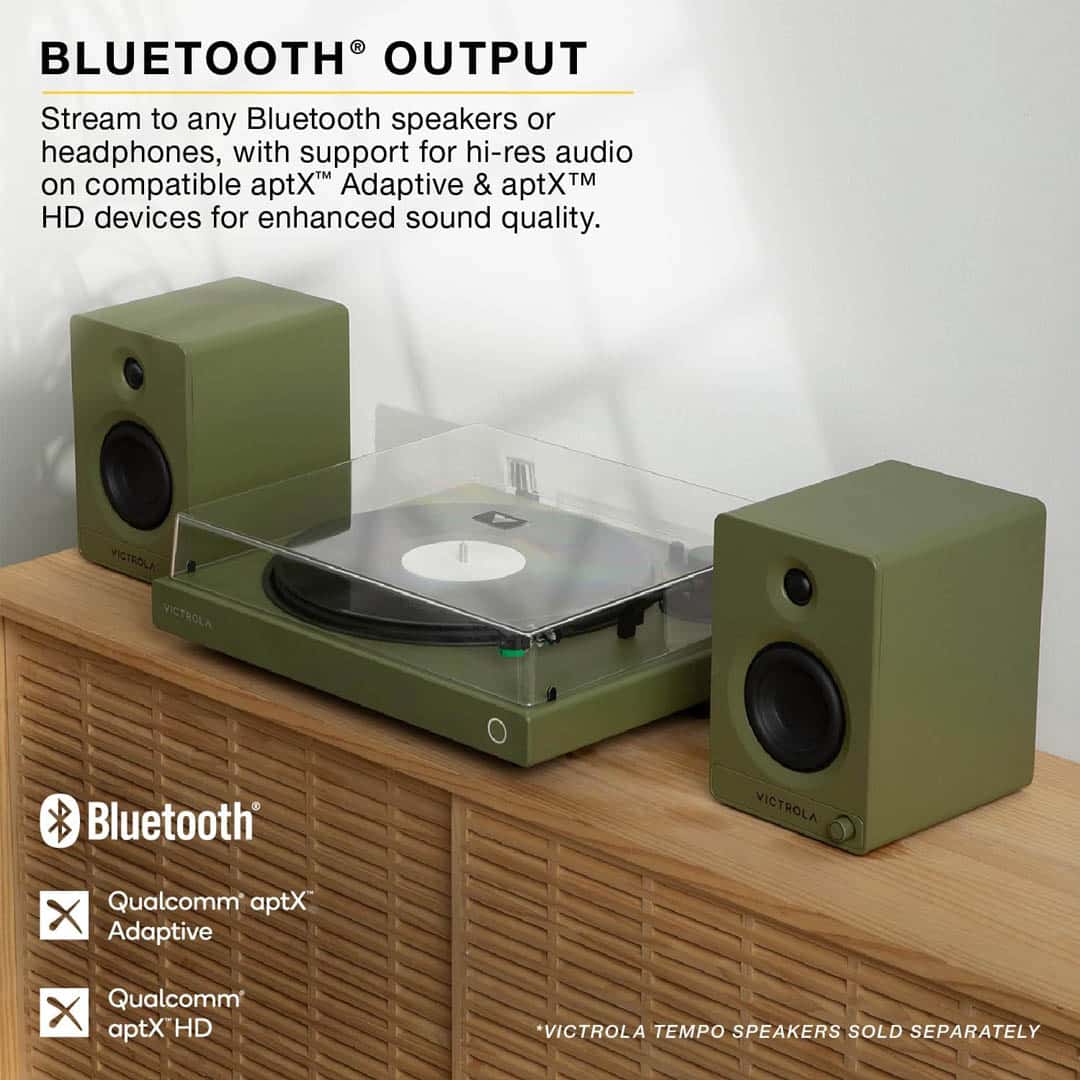 ย Bluetooth Turntable with Auracast โ 2-Speed Vinyl Record Player, Audio Technica AT-VM95E Cartridge, Hi-Res aptX HD and Adaptive Bluetooth Streaming, Auracast Broadcast Audio (Green)