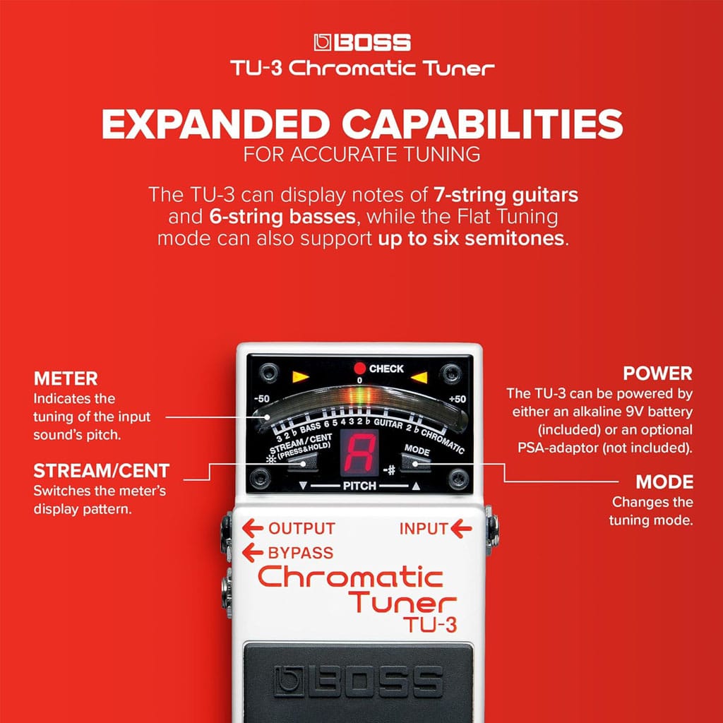 BOSS TU-3 Chromatic Tuner โ Rugged, Accurate Stage Tuning