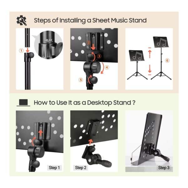 3-in-1 Versatility – Use as a floor music stand, desktop book stand, or reading stand.