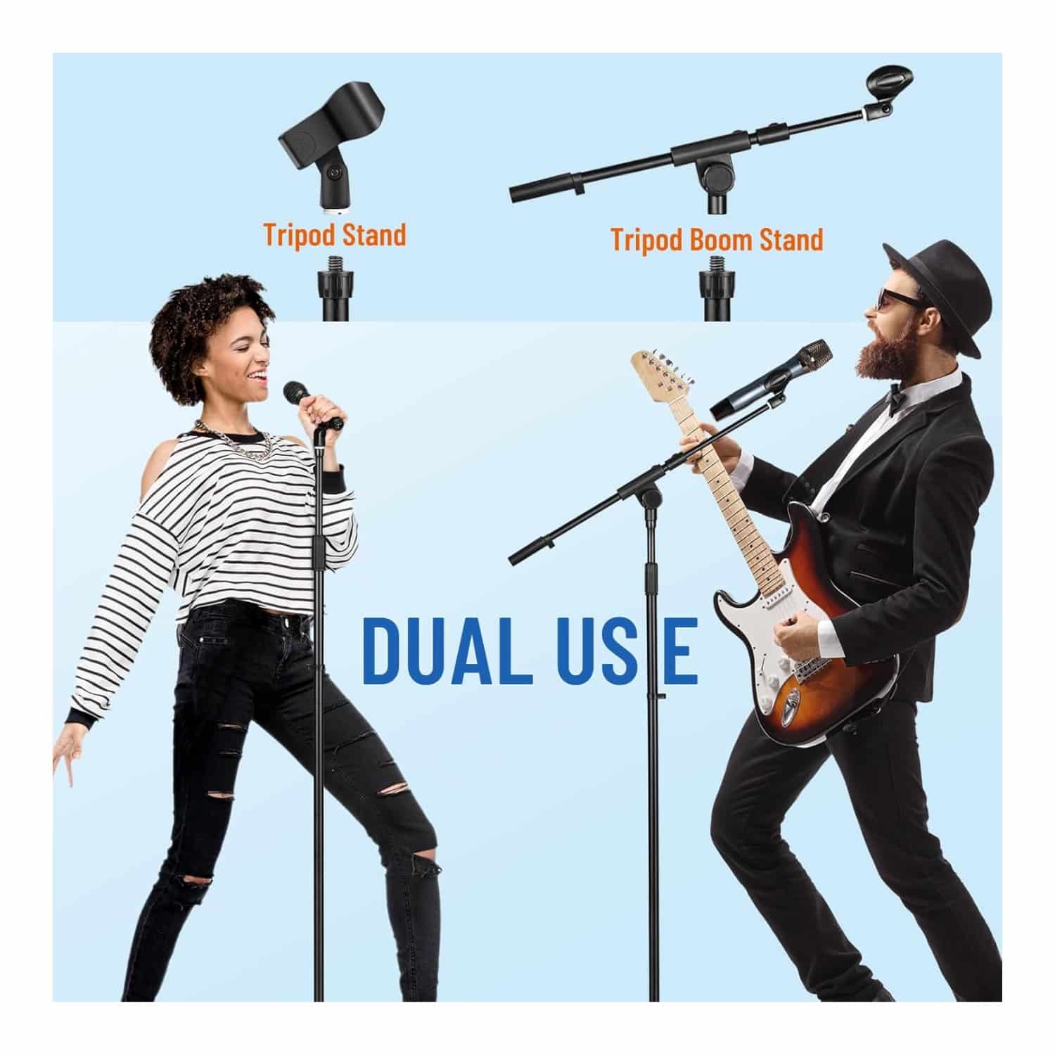 Adjustable Height & Boom Arm โ Easily adapt to different singing styles, standing or sitting, with flexible adjustments.