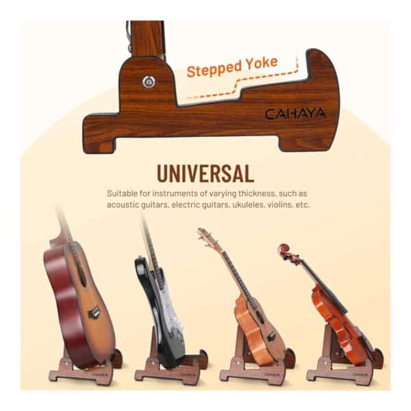 Elevate your instrument with the CAHAYA Wooden Portable Guitar Stand, a stylish blend of functionality and elegance. Crafted with durable wood and a foldable A-frame design, this stand provides reliable support for guitars and other string instruments while adding a touch of sophistication to your space. Whether at home, on stage, or in the studio, itโs the perfect balance of portability, strength, and style.