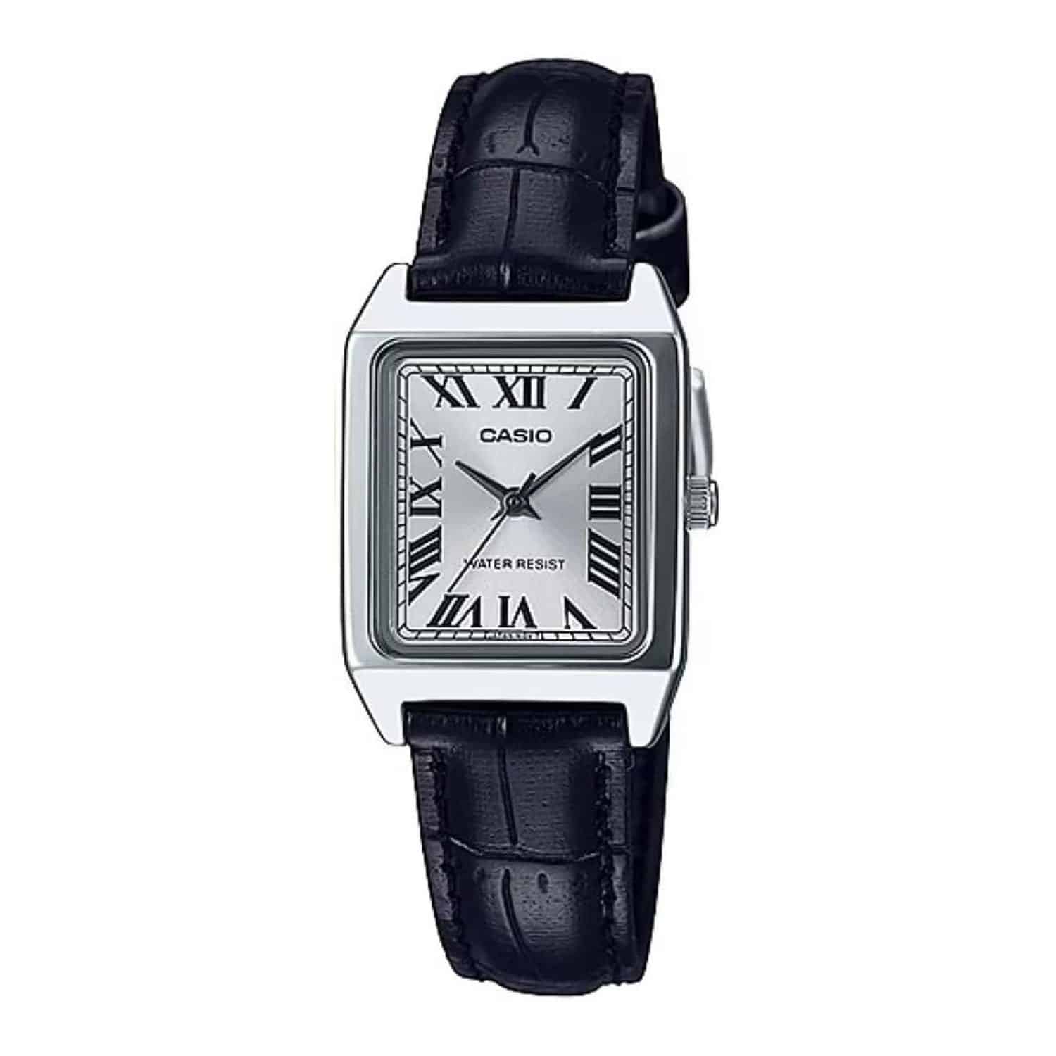 The Casio LTP-V007L-7B1 is the perfect blend of sophistication and simplicity, designed for women who appreciate classic style with a modern touch. Featuring a sleek rectangular case, a refined silver-tone Roman numeral dial, and a genuine leather strap, this dress watch adds effortless charm to any outfitโwhether casual or formal.