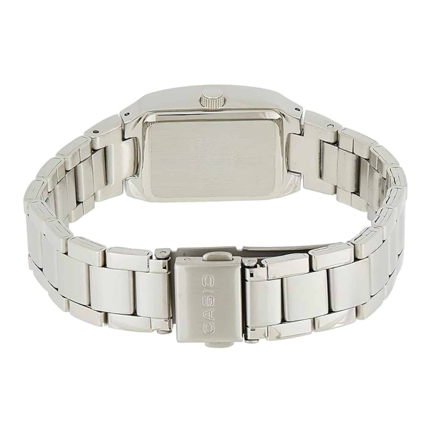 The Casio Women’s LTP1254D-1A Classic Analog Bracelet Watch blends sophistication with everyday style. With its sleek silver-tone bracelet and bold black dial, this timepiece is perfect for both casual wear and formal occasions. Designed for women who value simplicity, durability, and elegance, it’s a classic you’ll love to wear every day.