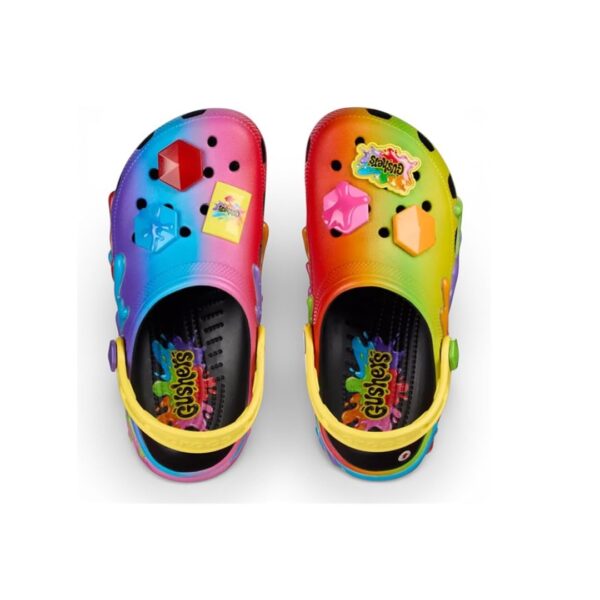 - Fun Gushers Design: Features playful Gushers branding on the footbed and colorful charms for a unique look