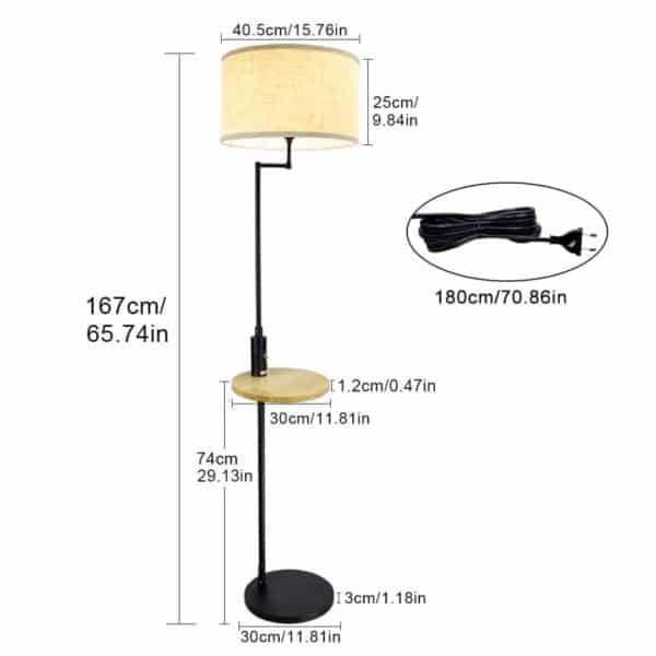 The Depuley floor lamp combines practical lighting with modern style and functionality. Its sleek black finish, fabric shade, and integrated wooden shelf make it a versatile addition to living rooms, dining areas, or reading corners. Designed with a sturdy stainless steel pole and stable metal base, this lamp provides both safety and durability. The built-in USB port allows convenient device charging, while the linen lampshade diffuses a warm, inviting glow for a cozy atmosphere.