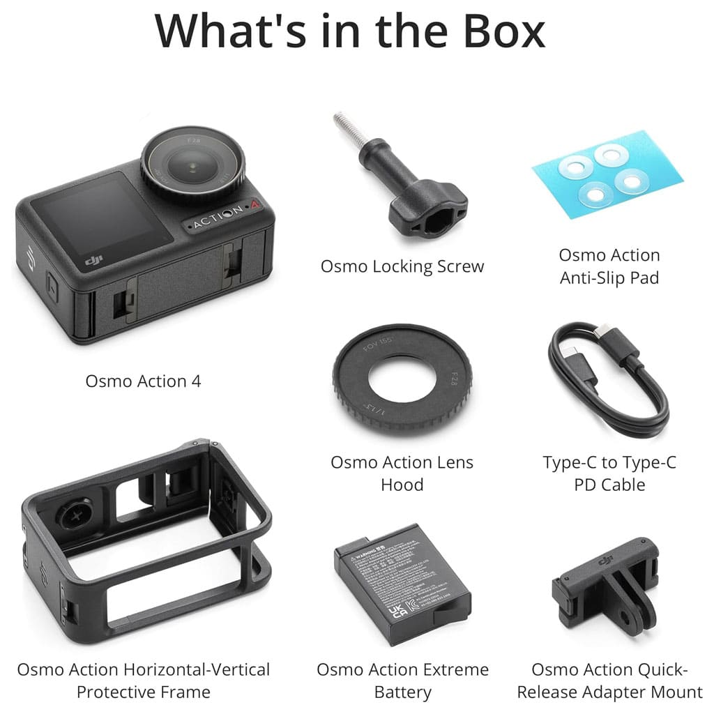 - The Essential Combo includes DJI Osmo Action 4, 1 battery, 1 Quick-Release Adapter Mount, and more accessories, making it a great introductory choice for first-time action camera users looking to capture 4K footage.