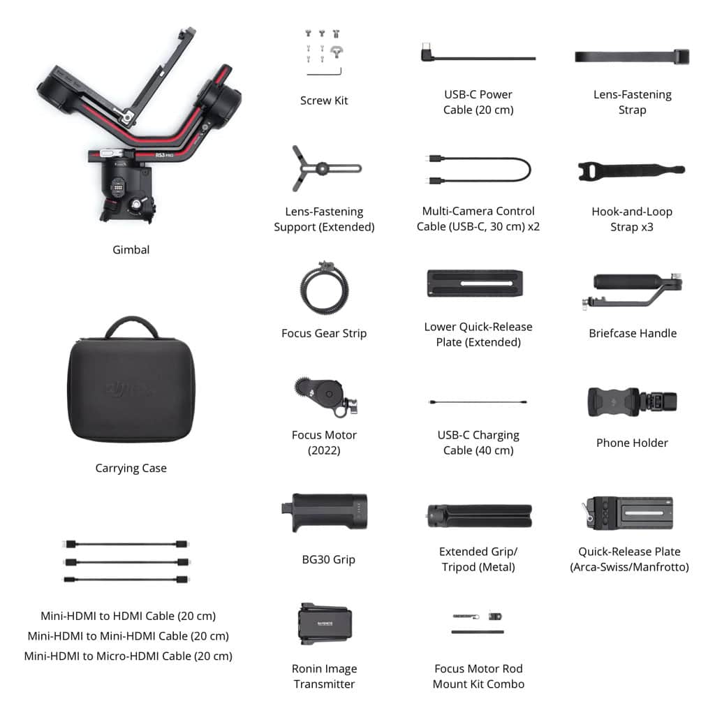 DJI RS 3 Pro Combo, 3-Axis Gimbal Stabilizer for DSLR and Cinema Cameras Canon/Sony/Panasonic/Nikon/Fujifilm/BMPCC, Automated Axis Locks, Carbon Fiber Arms, Includes Ronin Image Transmitter, Black