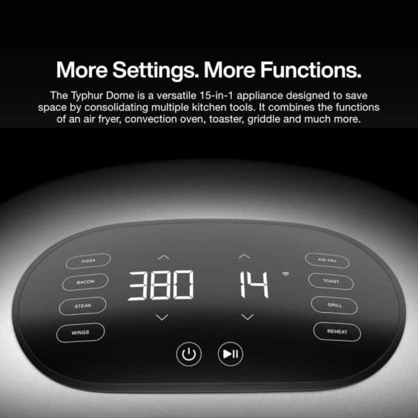 15-in-1 Cooking Functions: Pizza, Bacon, Steak, Wings, Fries, Frozen, Air Fry, Toast, Grill, Bake, Griddle, Roast, Broil, Dehydrate, Reheat