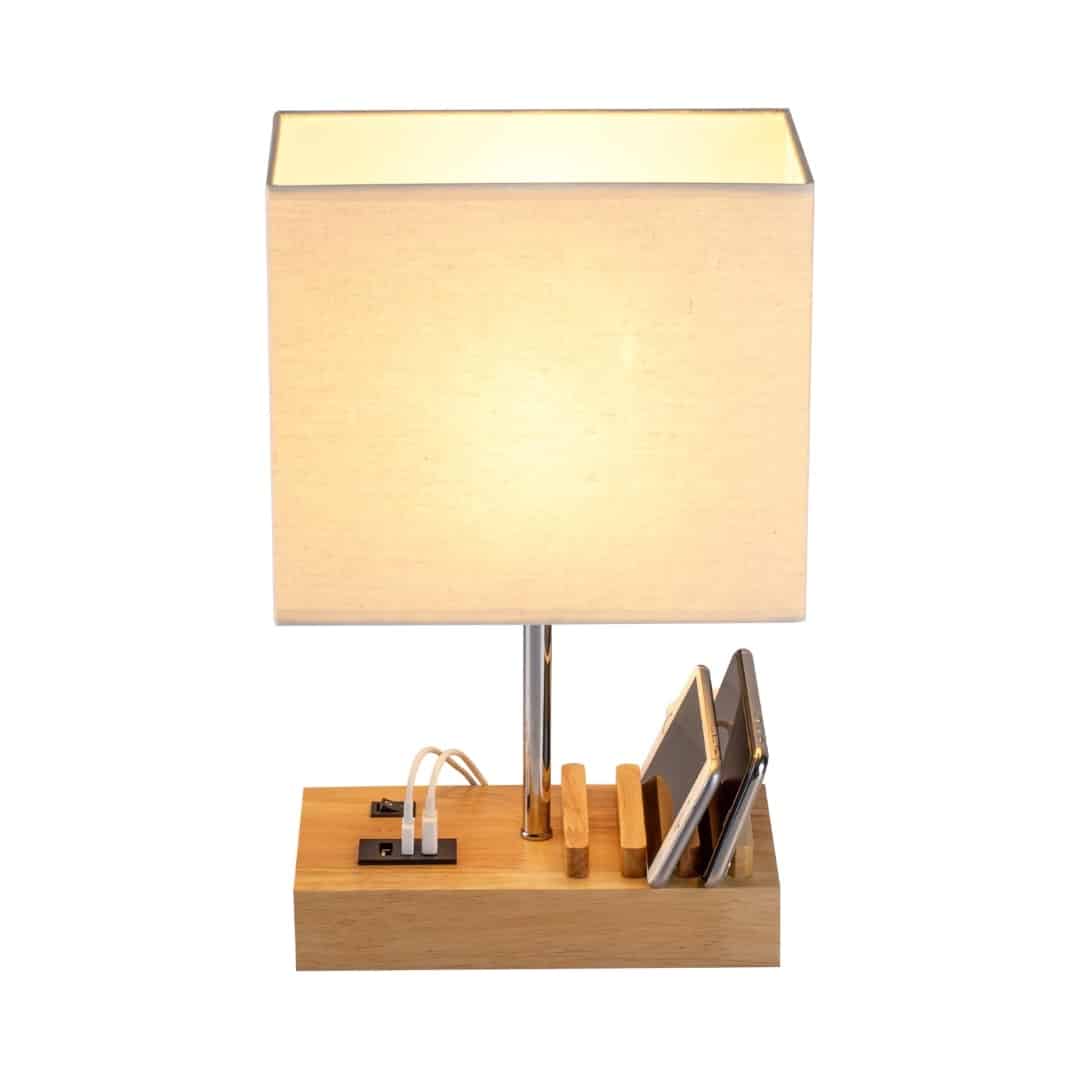 The Dreamholder Table Lamp blends modern design with practical functionality, making it an ideal choice for bedrooms, living rooms, and home offices. Featuring a natural wooden base with three built-in phone holders and a linen fabric shade, this lamp brings warmth, style, and convenience to your space.