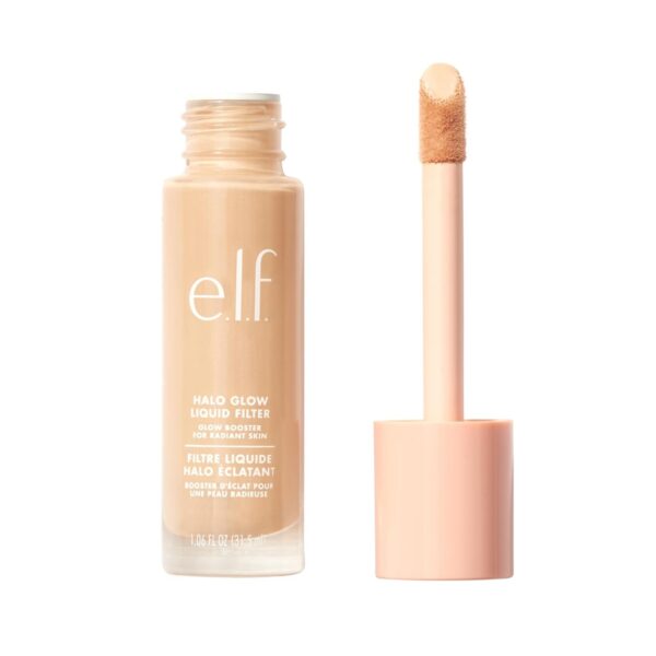 The e.l.f. Halo Glow Liquid Filter delivers a radiant soft-focus glow with buildable coverage.