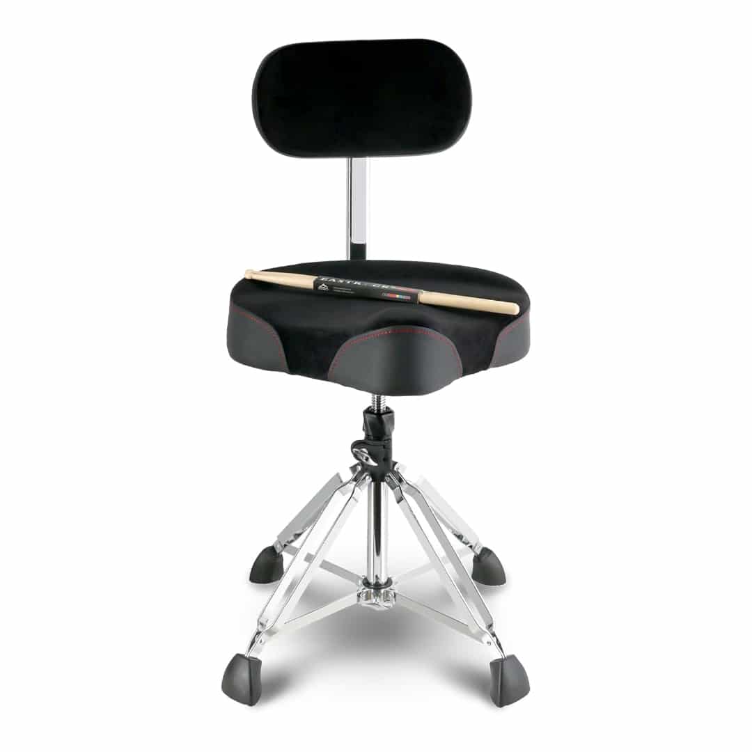 Play longer and more comfortably with the EASTROCK Drum Throne, designed with a supportive backrest, sturdy 4-leg base, and a motorcycle-style padded seat. Built tough for stability and comfort, this drum chair is perfect for drummers who want durability and all-day support on stage or in the studio.