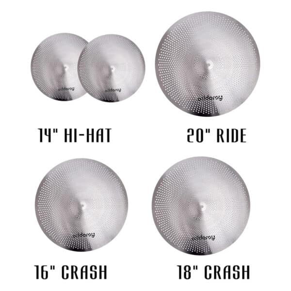 Crafted from high-grade, thickened metal with a chrome finish, these cymbals are designed for durability and long-lasting performance. Each cymbal features a hand-drilled small hole design that significantly reduces volume by 70–80% compared to traditional cymbals, while still maintaining the feel and responsiveness of regular cymbals.
