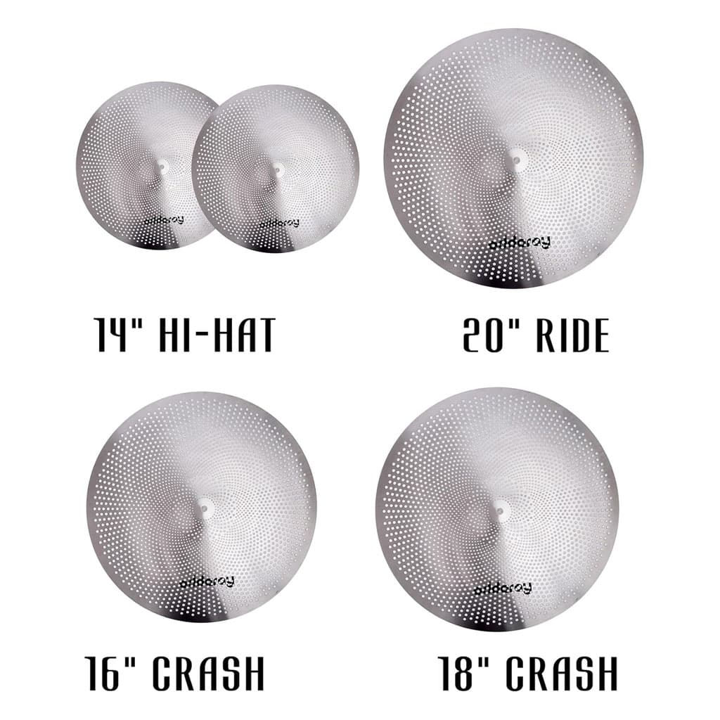 - The mute cymbal set includes 5 pieces 14″hi-hat+16″crash+18″crash+20″ ride.