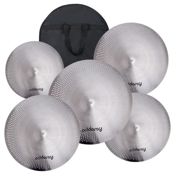 Eddaray Low Volume Cymbal Pack – 5-Piece Mute Cymbal Set with Free Carry Bag (Chrome)