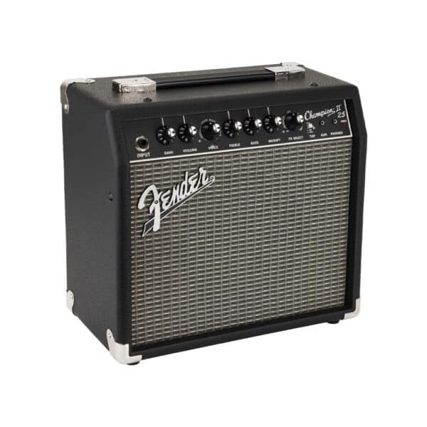 The Fender Champion II 25 delivers powerful tone, versatile effects, and classic Fender styling in a compact combo amp. Perfect for practice, rehearsals, or smaller gigs, this solid-state amplifier offers clean and overdriven sounds along with a wide range of effects to cover any genre. With simple controls, AUX input, and headphone output, itโs easy to use whether youโre just starting out or need a reliable amp for everyday playing.