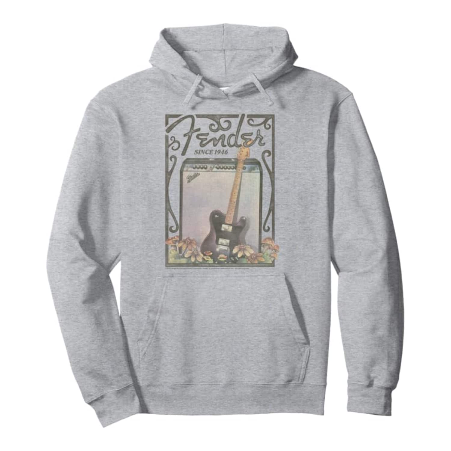 Rock timeless style and comfort with the Fender Since 1946 Floral Poster Pullover Hoodie. Combining vintage guitar vibes with cozy streetwear, this hoodie celebrates Fenderโs heritage while keeping you warm in every jam session or casual hangout. Perfect for music lovers who wear their passion loud and proud.