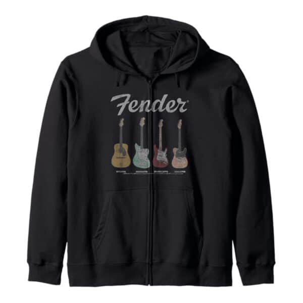 Rock your everyday style with the Fender Vintage Guitar Lineup Zip Hoodie, blending classic comfort and musical heritage into one iconic piece. Designed for true guitar lovers, this hoodie keeps you cozy while showcasing the timeless Fender spirit that shaped rock history.
