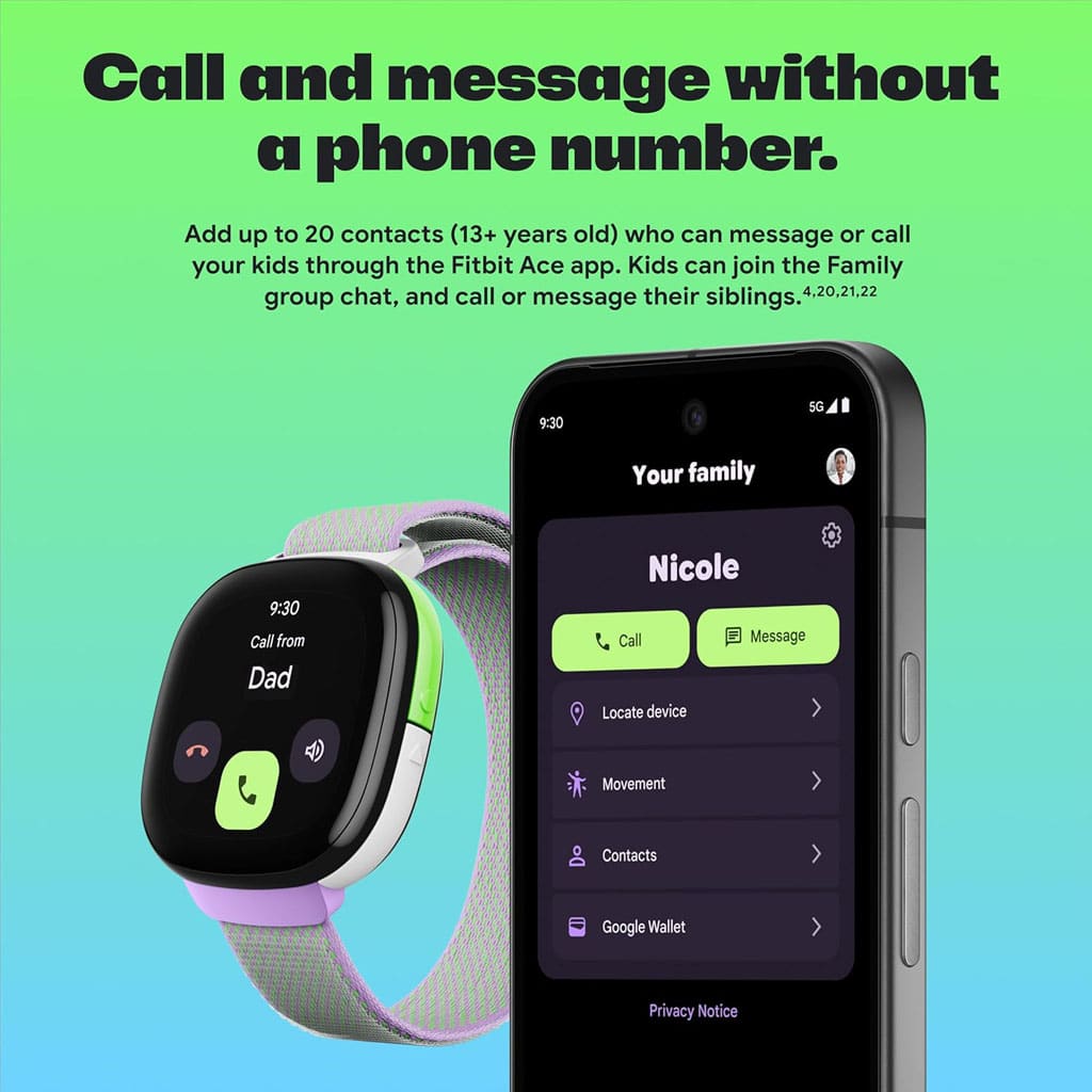 The Fitbit Google Ace LTE Kids Smartwatch is a next-generation smartwatch designed to keep kids active, connected, and safeโwithout needing a phone. Built with 4G LTE and GPS, Ace LTE lets parents stay in touch with their children through secure calling, messaging, and real-time location sharing.