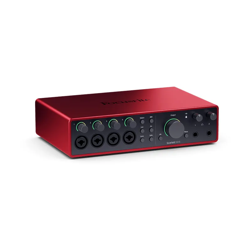 Scarlett 18i16 is the complete compact studio hub for all your instruments and outboard gear. Perfect for producers, 18i16 is equipped with enough I/O to connect all your studio gear. Four of our most detailed ultra-low-noise mic preamps. Hi-Z, line, and MIDI connections for your guitars, keys, synths, grooveboxes, and controllers. With 18i16 your headphones, monitors, and line outs each get their own mix, so you can match the studio setup to the session. Expand your channel count using the S/PDIF or ADATย connections.