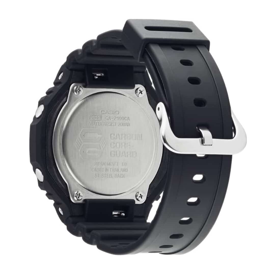 A bold mix of rugged toughness and modern style, this G-Shock stands out with striking neon accents on a sleek black design. Built for durability and everyday adventure, it blends analogue hands with digital functions for ultimate versatility.
