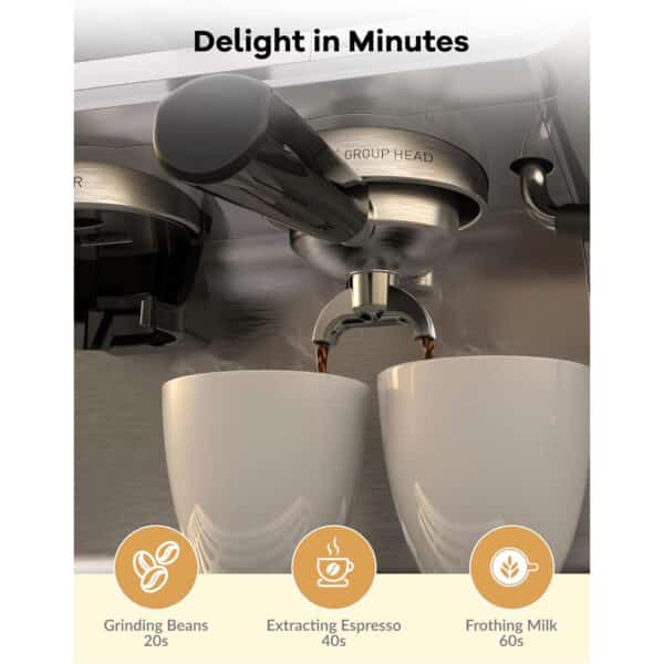 - 20-Bar High-Pressure System: Ensures optimal extraction for espresso with thick crema.