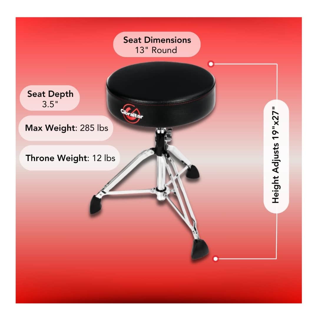 Sit in comfort and play with confidence using the Gibraltar 9608 Drum Throne. Designed with drummers in mind, it offers reliable support, smooth adjustments, and lasting durabilityโperfect for practice, studio work, or live gigs.