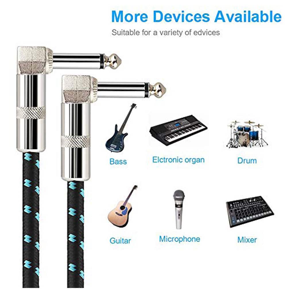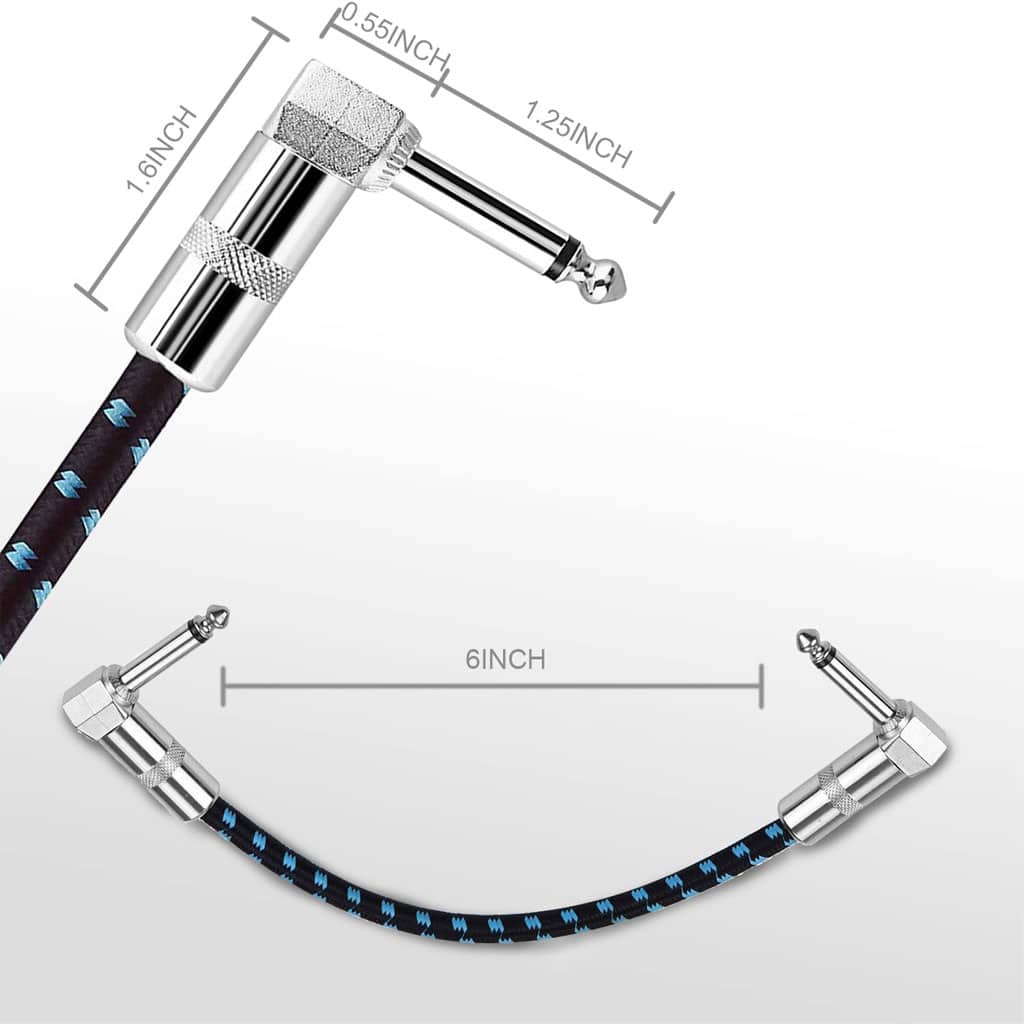 Elebase Guitar Patch Cables 6-Inch 3-Pack, 1/4″ Right-Angle TS, Nylon Braided Instrument Audio Cable