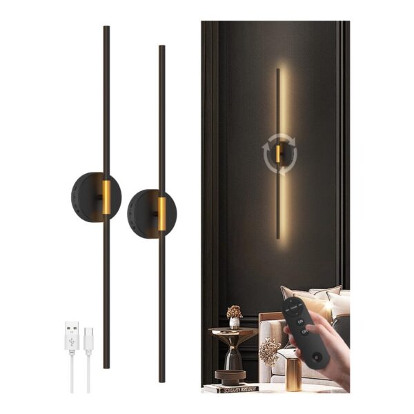 GOODEA Battery Wall Light โ 72 cm Long, Dimmable LED Wall Lamp with Remote, USB Rechargeable, 3000K Warm White (Pack of 2)