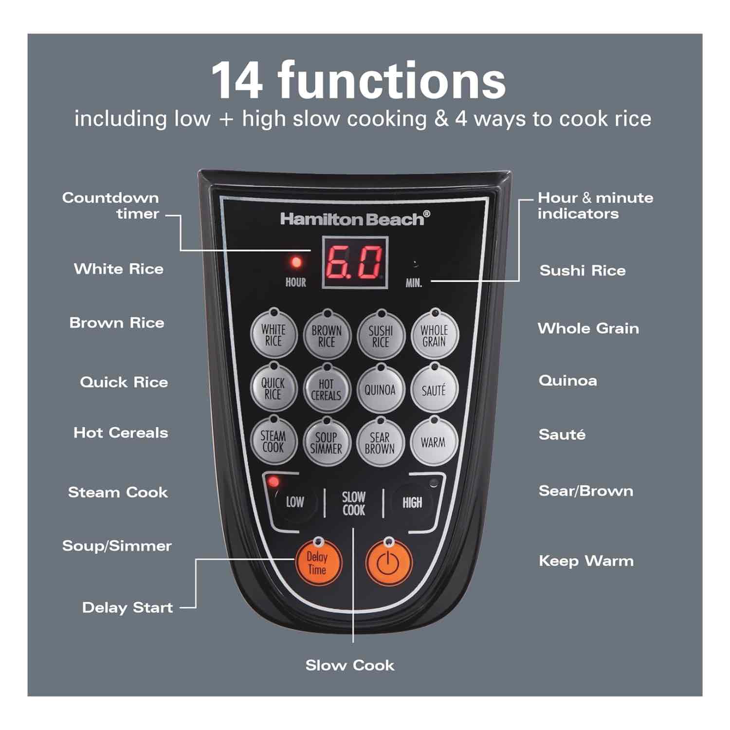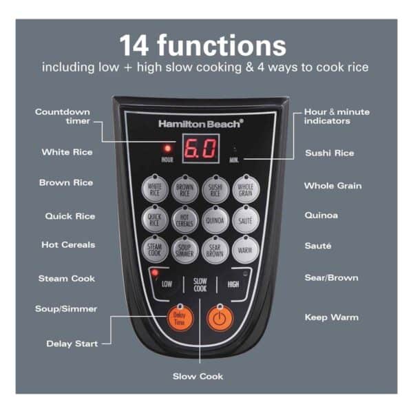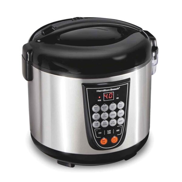 Cook smarter, not harder, with the Hamilton Beach Digital Programmable Cooker. Whether youโre making fluffy rice, hearty soups, tender slow-cooked meals, or steaming healthy sides, this versatile kitchen essential does it all. With 14 pre-programmed settings and a sleek stainless steel design, itโs built to handle everyday cooking with ease and style.
