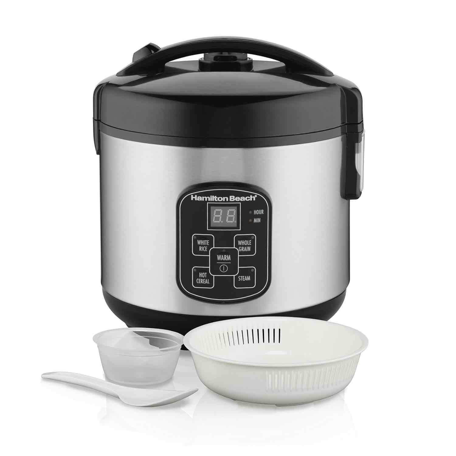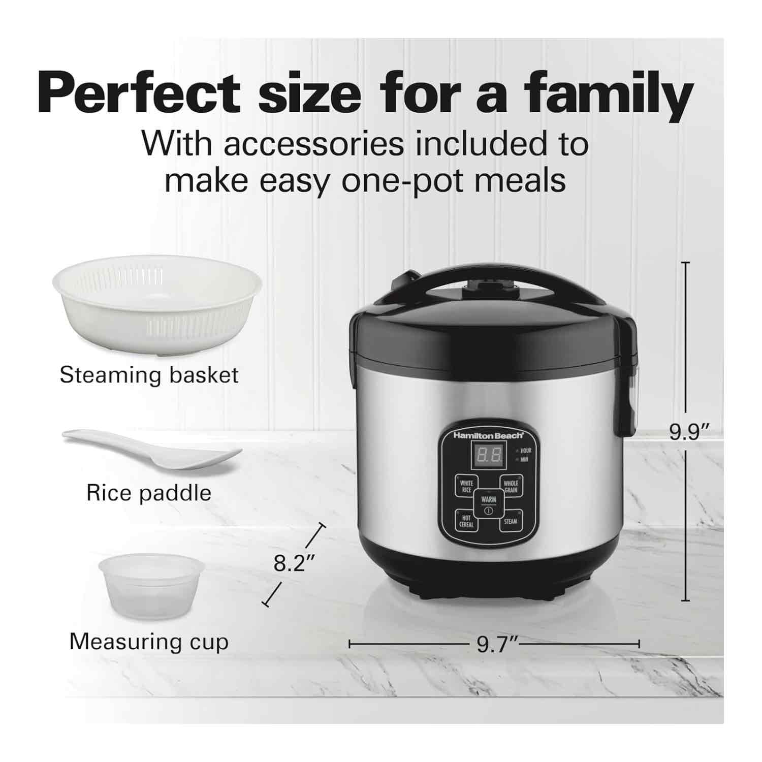 The Hamilton Beach Digital Programmable Rice Cooker & Food Steamer is your all-in-one kitchen companion designed for perfectly cooked rice, healthy steamed meals, and quick one-pot recipes. With its easy digital controls and stainless steel design, it makes mealtime effortless and efficient.
