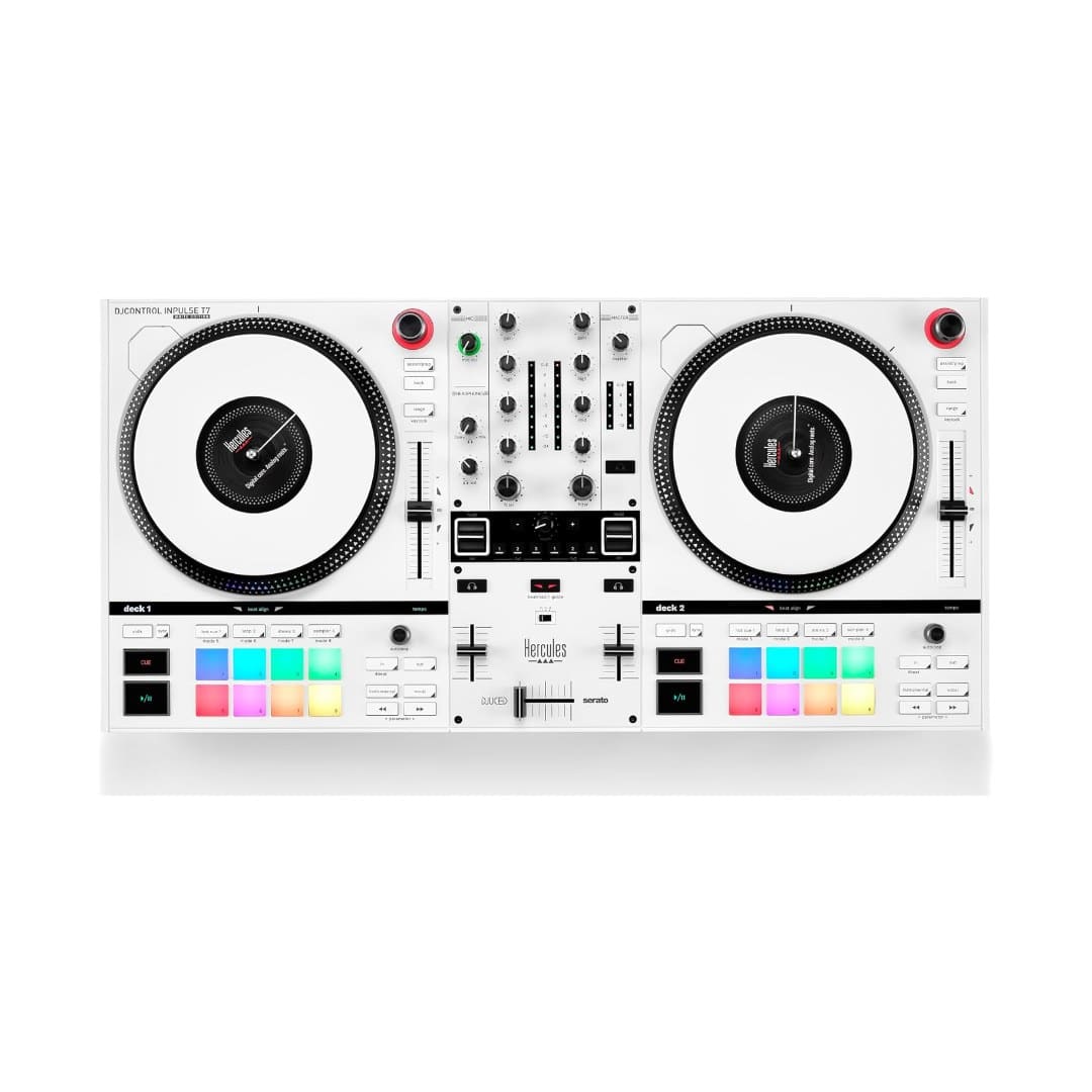 Combining the advanced modern technology of contemporary DJ controller units with the old-school stylings that vinyl DJ fans and turntablists crave, theย DJControl Inpulse T7ย fromย Herculesย is a motorized DJ controller that provides complete control over Serato DJ and DJUCED DJ software with the bonus of emphasizing the tactile feel of vinyl records when performing mixes.