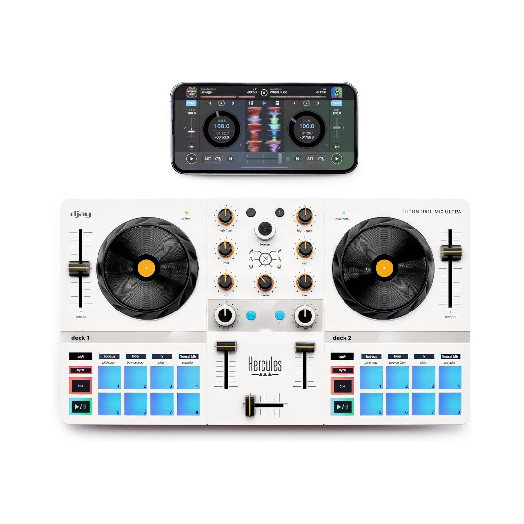Take the party anywhere with the Hercules DJControl Mix Ultra, the ultimate ultra-mobile DJ controller designed for iOS and Android smartphones. Whether youโre an aspiring DJ, casual hobbyist, or just want to create a fun vibe at social gatherings, this portable controller gives you the tools to mix like a pro anytime, anywhere.