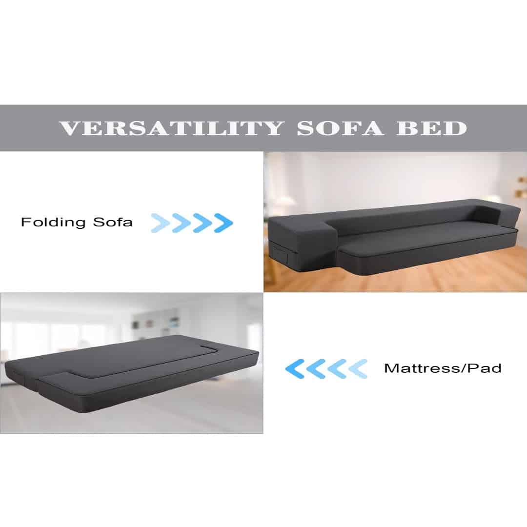 HonTop 8-Inch Folding Sofa Bed โ Queen Size Convertible Futon Sleeper Chair with Memory Foam (Dark Grey)