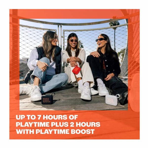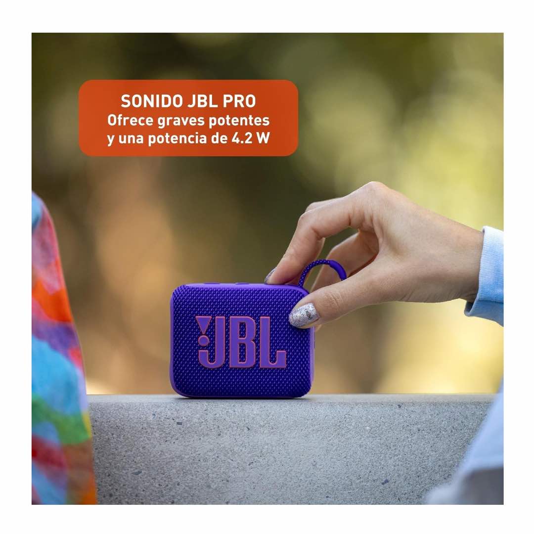 Bring the party anywhere with the JBL Go 4 – the ultra-portable Bluetooth speaker that packs a powerful punch. With its big Pro Sound, punchy bass, and rugged waterproof design, it’s built to keep the music going wherever life takes you. Compact yet mighty, it’s crafted with recycled materials for a sound that’s not only strong but also sustainable.