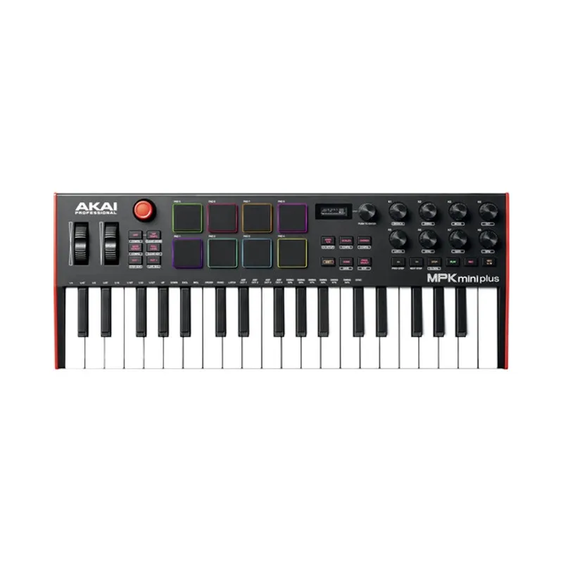 Musicians, producers, DJs, and other music creators looking for a compact yet full-featured keyboard controller for studio production and live performance will be impressed with the Akai Professional MPK Mini Plus, a keyboard controller with 37 velocity sensitive keys, utilizing a next-generation dynamic keybed for great playability. With advanced features like the integrated step/live sequencer, arpeggiator, dedicated transport controls, chord and scale mode, and real pitch-bend and modulation wheels, the MPK MINI PLUS offers endless creative possibilities. MPC Beats, a revolutionary DAW software based on the legendary MPC hardware, is included. The software also includes MPC plug-in instruments, insert effects, and expansion packs with tons of samples and drum hits.