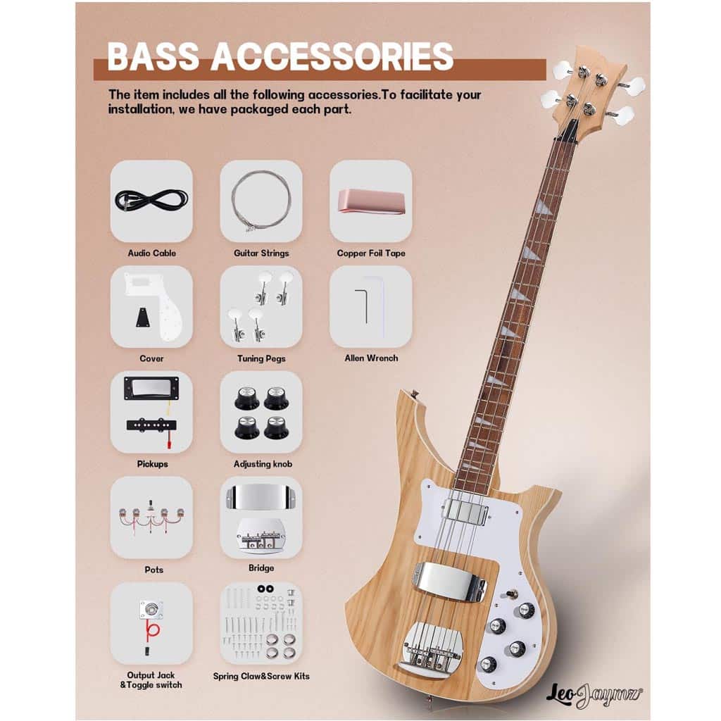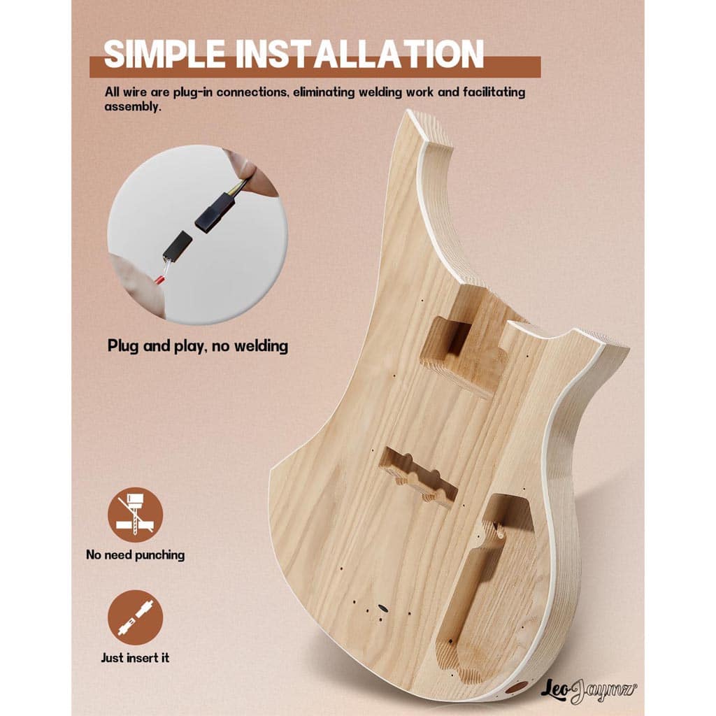 The Leo Jaymz DIY 4-String Electric Bass Guitar Kit is designed for beginners and hobbyists who want to assemble their own high-quality instrument with ease. Featuring new detailed color page instructions, this kit makes guitar building accessibleโ€”even for those with no prior experience.
