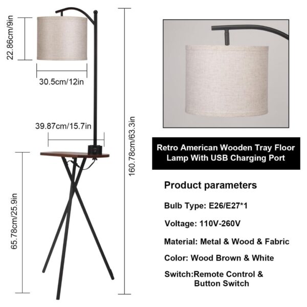 - 3-in-1 design: Floor lamp with integrated side table and storage shelves.