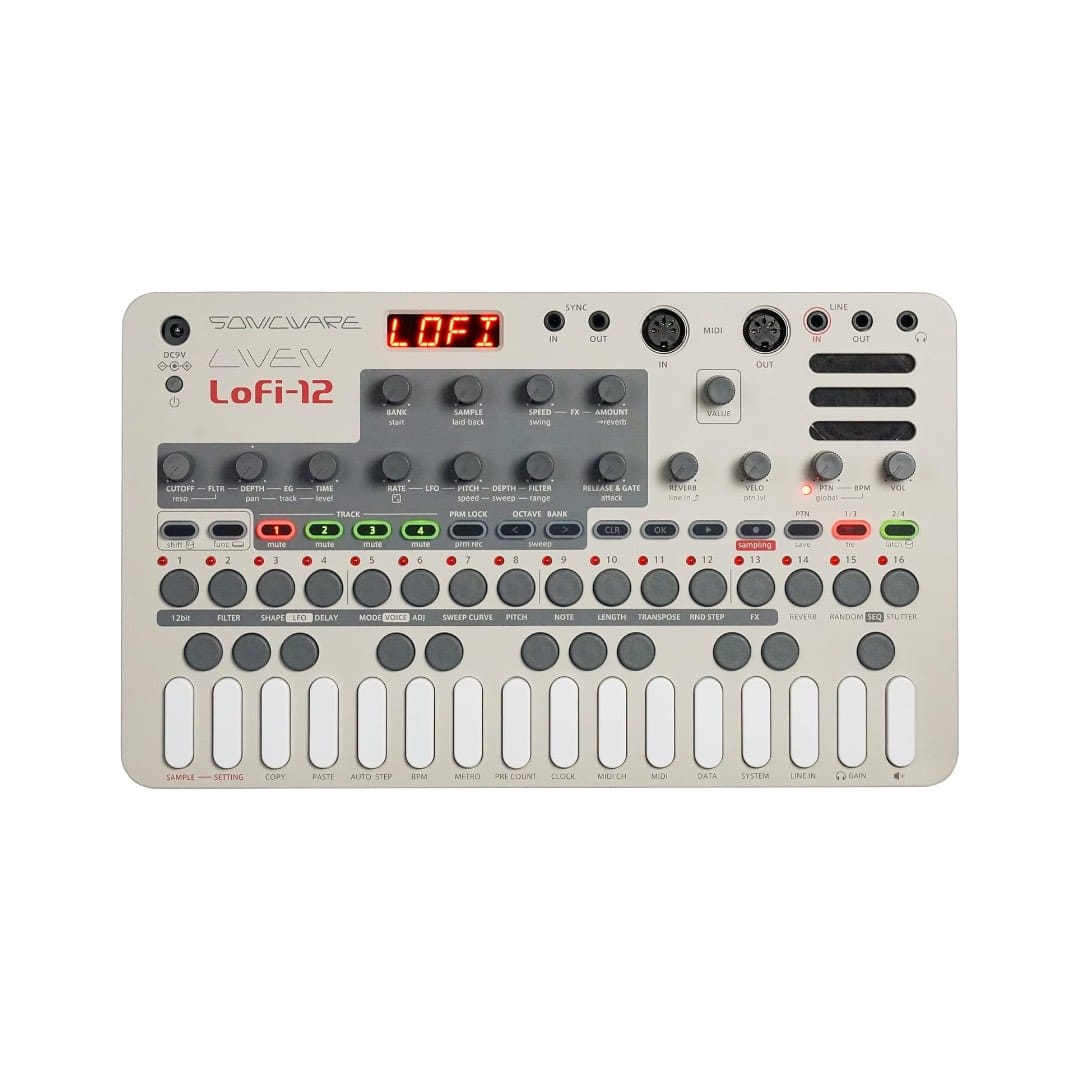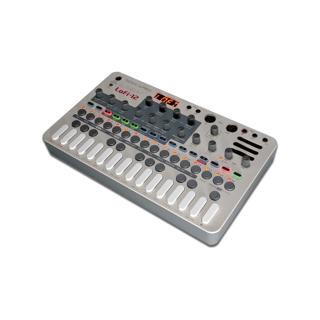 The Liven Lofi-12 by Sonicware is a compact groovebox and sampler that captures the warm, gritty character of retro 12-bit sampling. With a versatile 4-track step sequencer, multiple effects, and hands-on controls, it delivers everything you need to create lo-fi beats, chopped samples, and textured grooves on the go. Portable and battery-powered with a built-in speaker, itโs designed for both studio and live performance use.