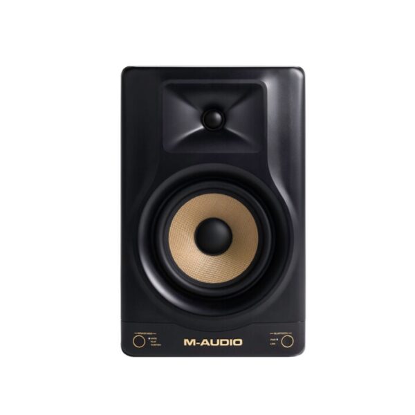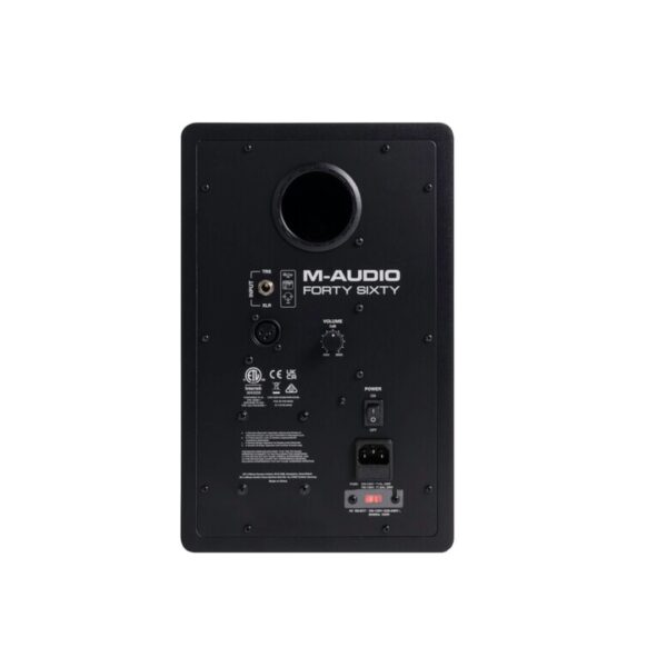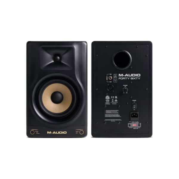 Designed for beatmakers, producers, DJs, mix engineers, content creators and party starters, the M-Audio Forty Sixty is a 100W studio monitor well suited for home and project studios or as part of a personal speaker system. The bi-amped loudspeaker features a 6.5″ extended-bass woofer and a 1″ high-frequency driver with waveguide, and offers built-in DSP that provides a precise crossover and customizable equalization to deliver detailed and accurate sound, even in acoustically untreated spaces. Professional-grade Burr-Brown analog-to-digital conversion ensures this monitor creates a clean and accurate representation of your sound, so you can make informed decisions and craft mixes that translate perfectly at home, in the car, and at the club.