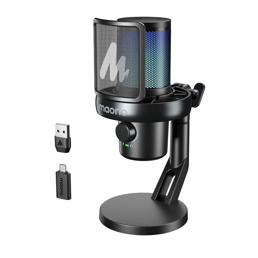 Take your gaming and streaming setup to the next level with the MAONO DM40 Pro. This wireless condenser USB microphone delivers crystal-clear sound for podcasts, recording, and live streaming. Featuring AI voice modulation, 3-level noise cancellation, and fully customizable RGB lighting, itโs designed for gamers and content creators who want style and performance in one compact package. Compatible with PC, PS5, PS4, Twitch, and YouTube.